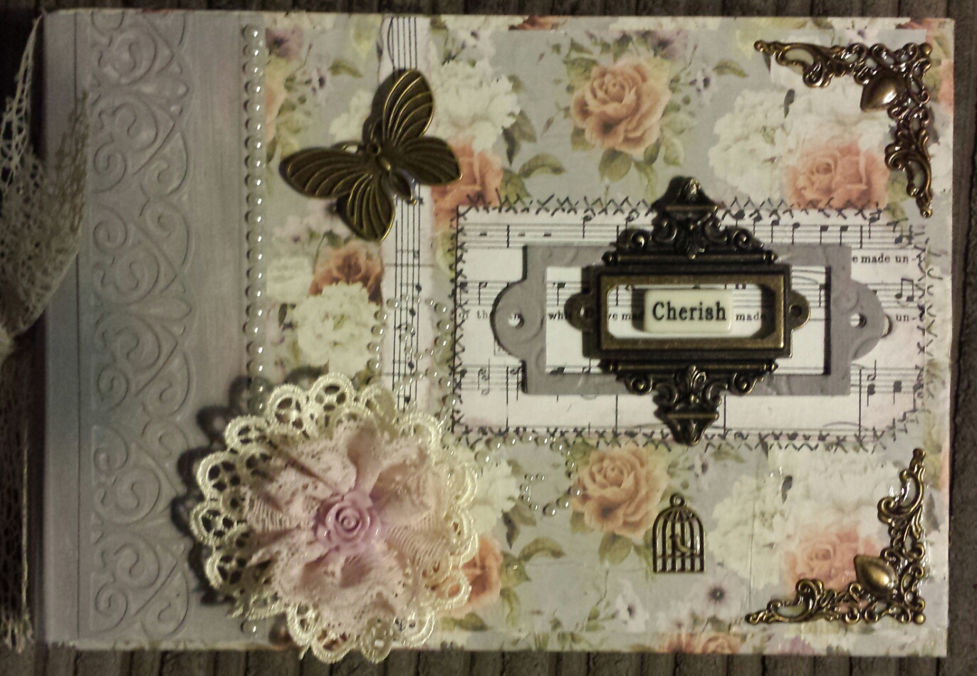 This is a great shabby chic book, which has numerous uses. I teach it as a die storage book, however it can easily be used as a Wedding, New Baby, Travel Photo Album.